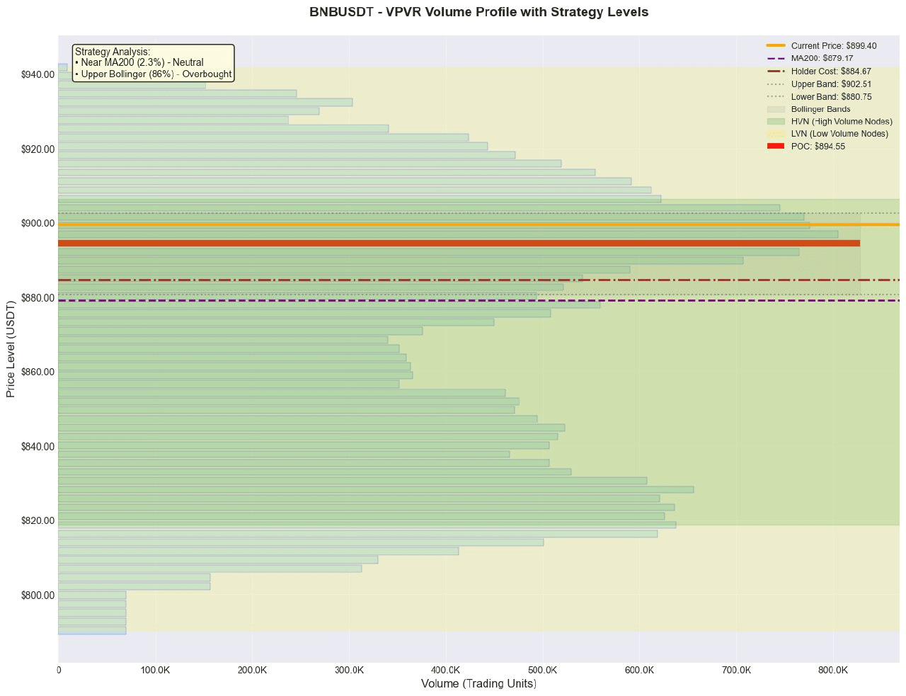 3. High Trading Volume/Concentration Zone (HVN): POC (894.55) is the core HVN and is the gravitational point for the price's short-term pullback. Additionally, the main buying units at 860.0 (1653K) and 840.0 (391K) form a distant support zone below; the main selling units at 930.0 (966K) and 955.5 (957K) constitute the resistance zone above.