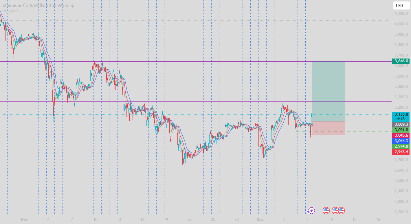• Target: 3,400 (previous high + equal legs projection / HTF liquidity pool)