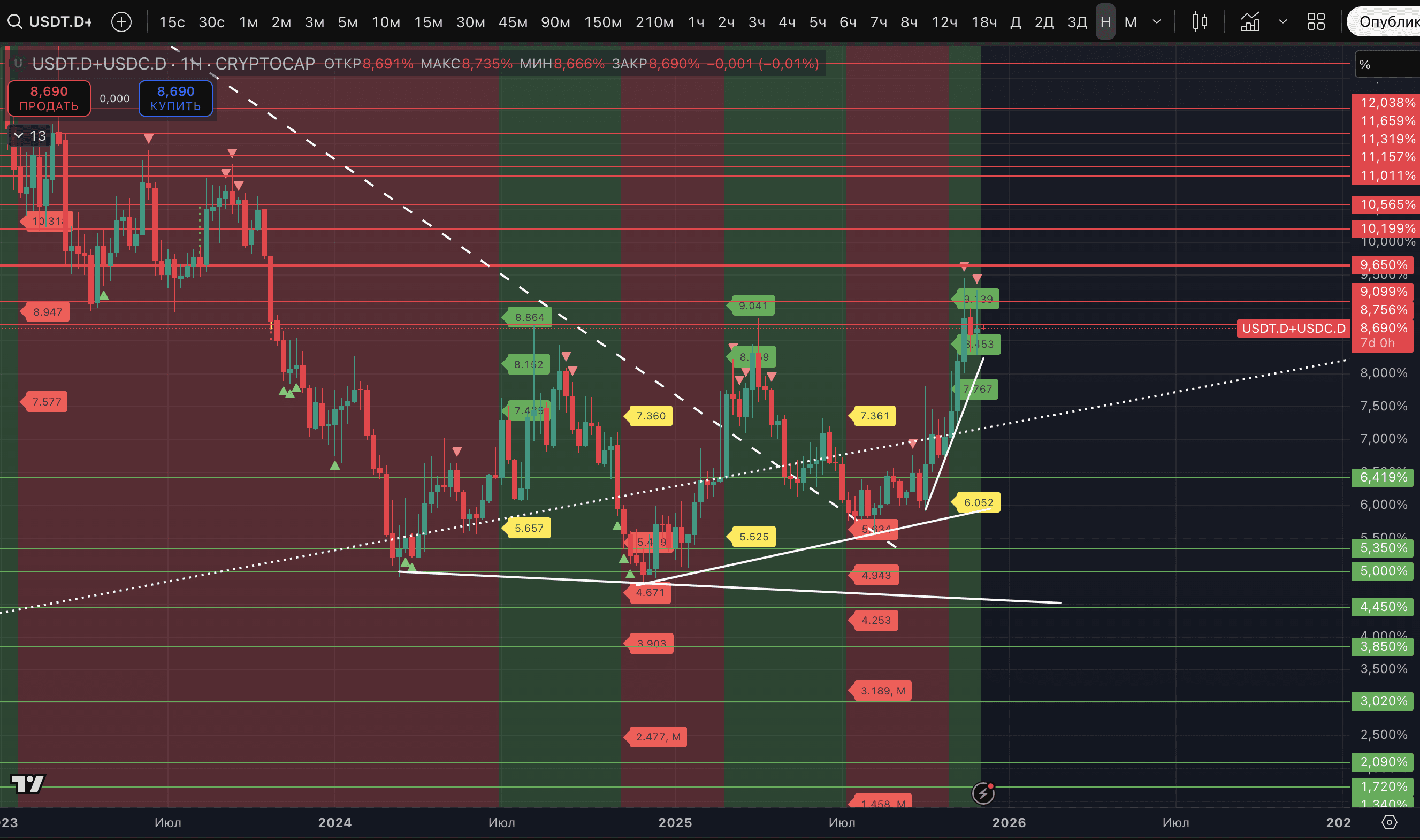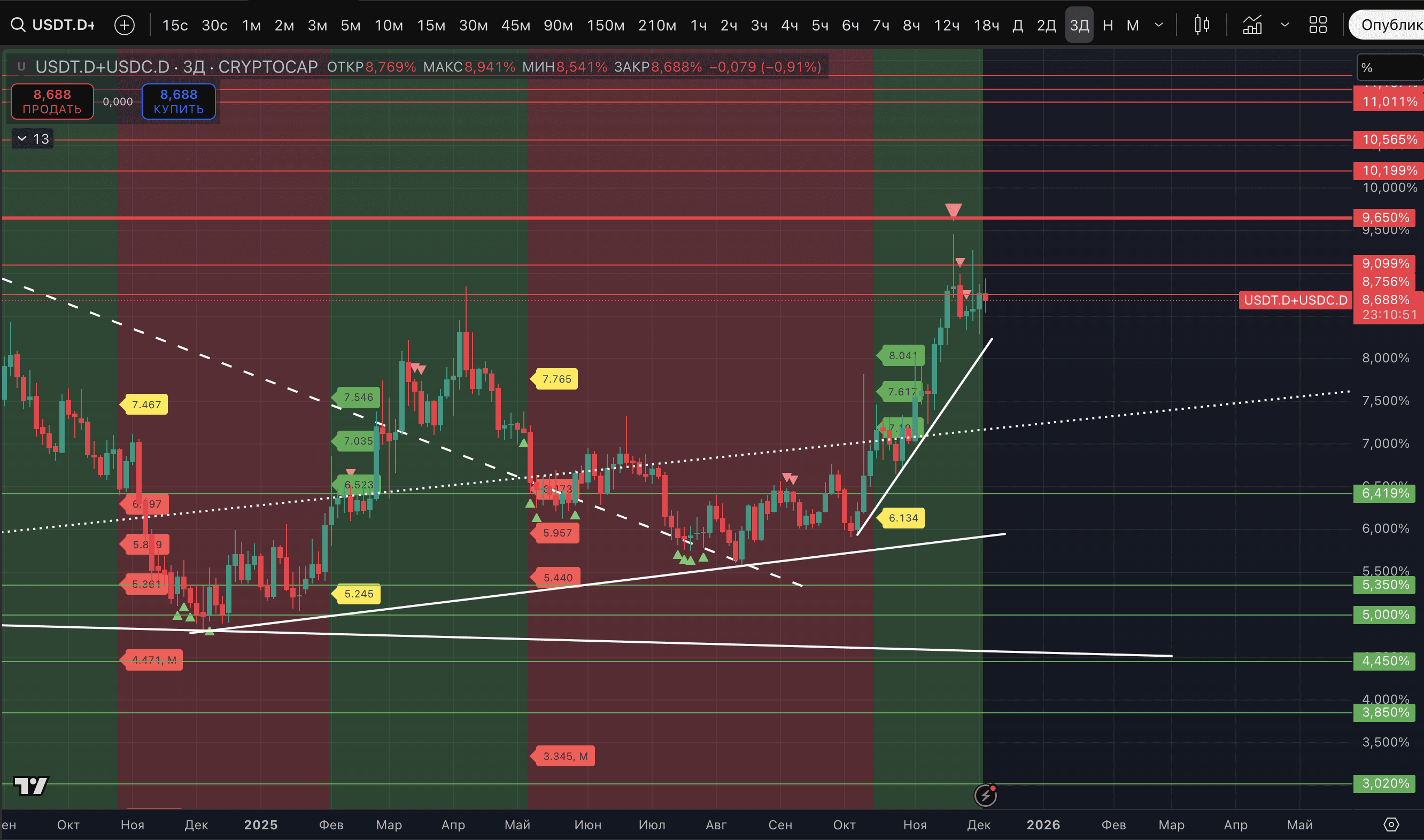 There are three high marks - in the capitalization chart of USDT+USDC. Moreover, let us remind you, there was a Strong signal on the 3-day timeframe, which is quite rare.