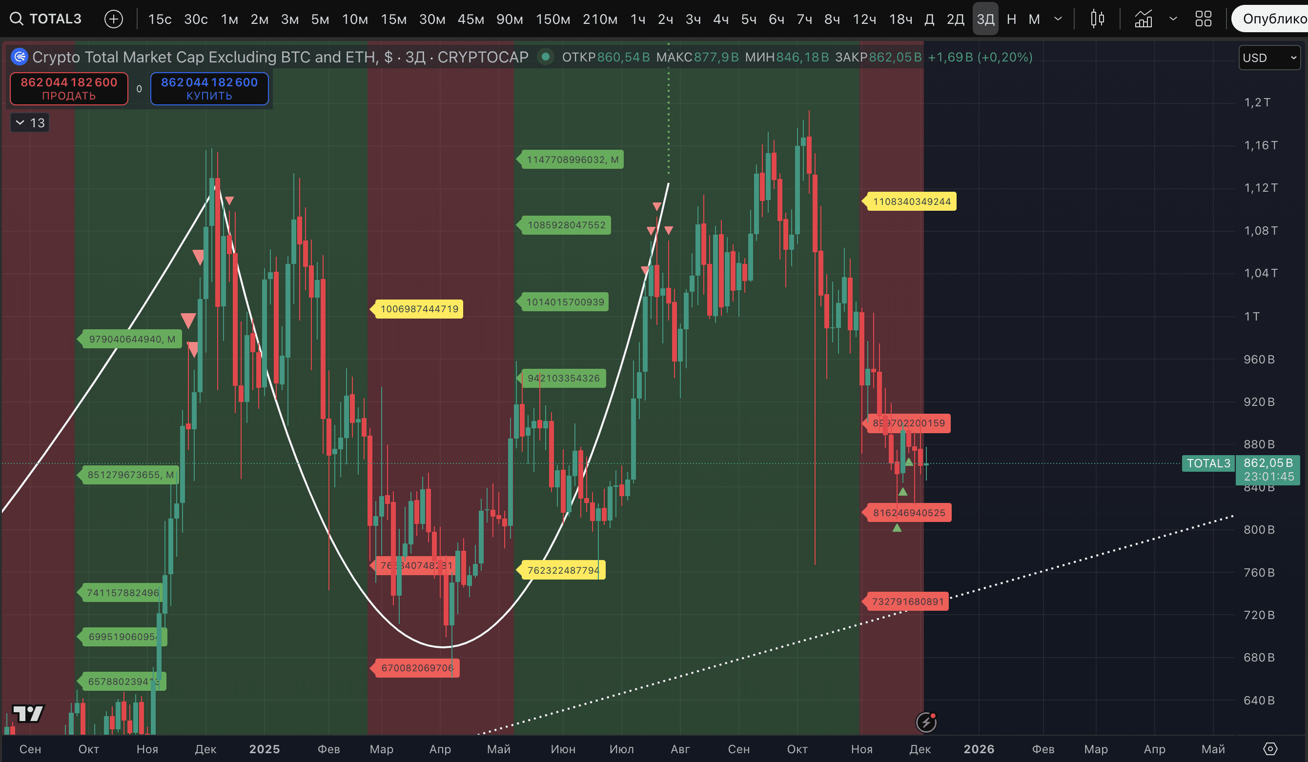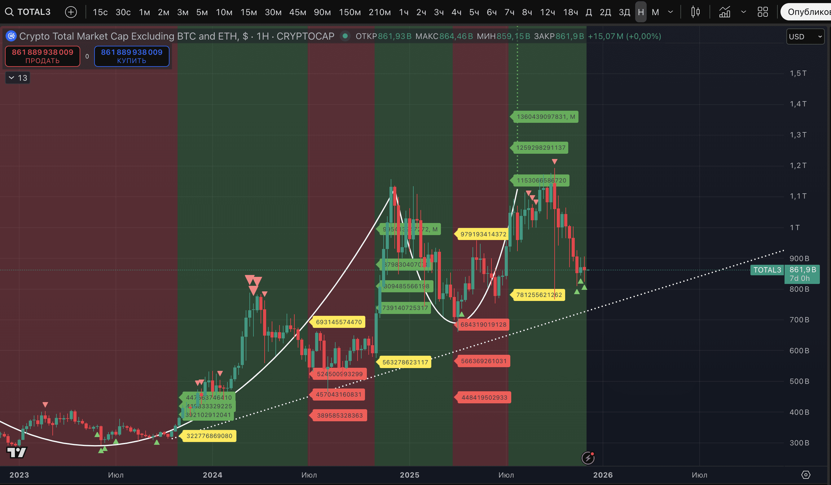 - TOTAL3 (capitalization of the cryptocurrency market excluding BTC and ETH),