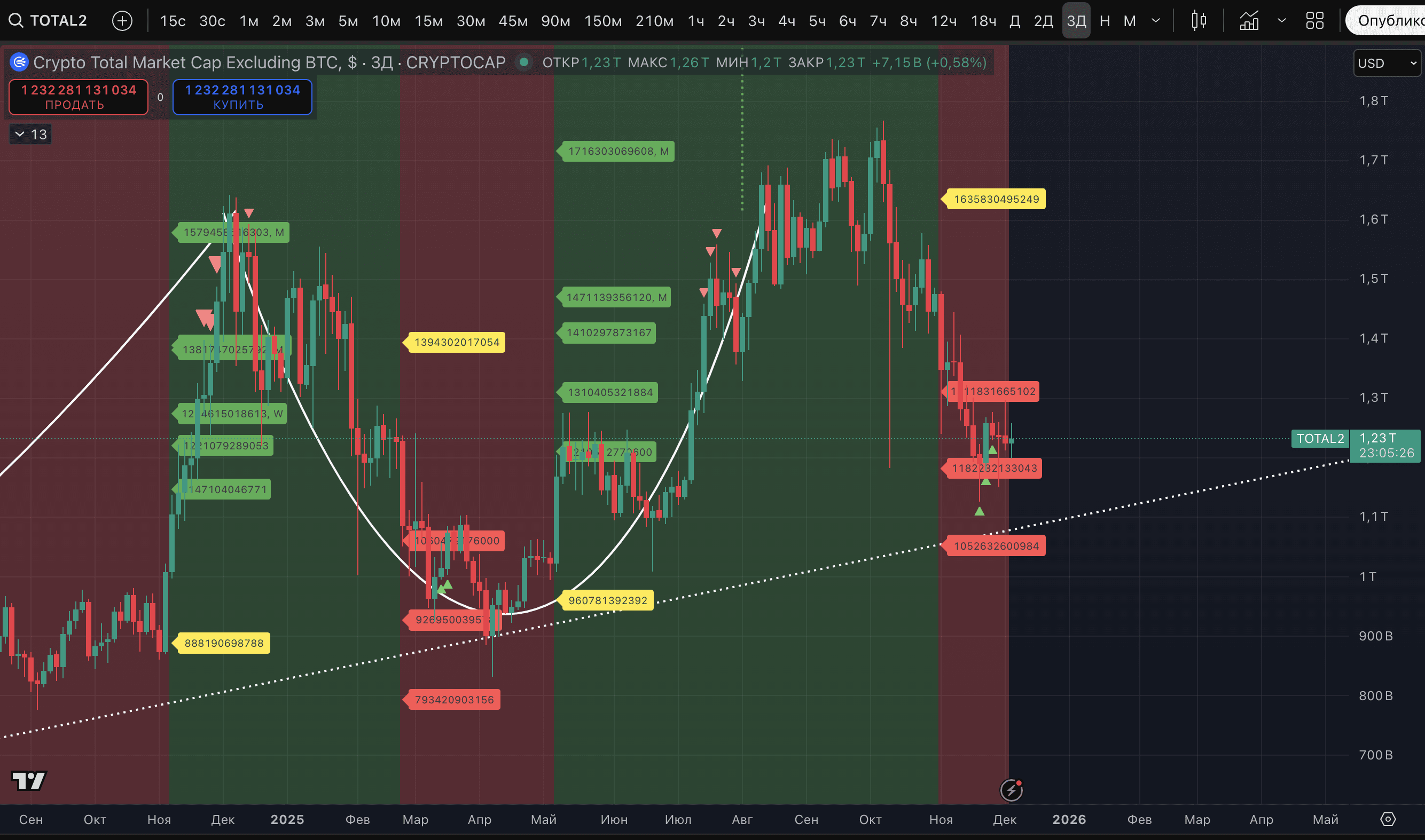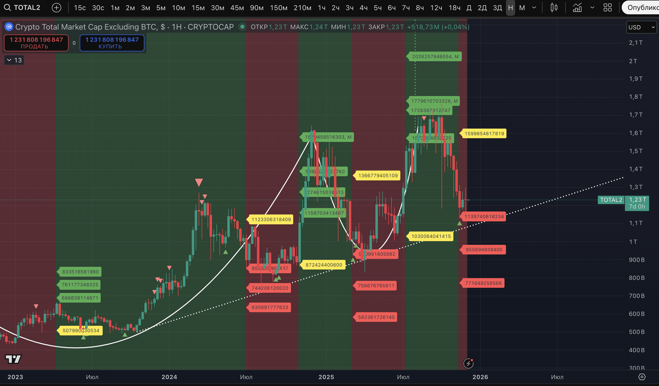 - TOTAL2 (capitalization of the cryptocurrency market excluding BTC),