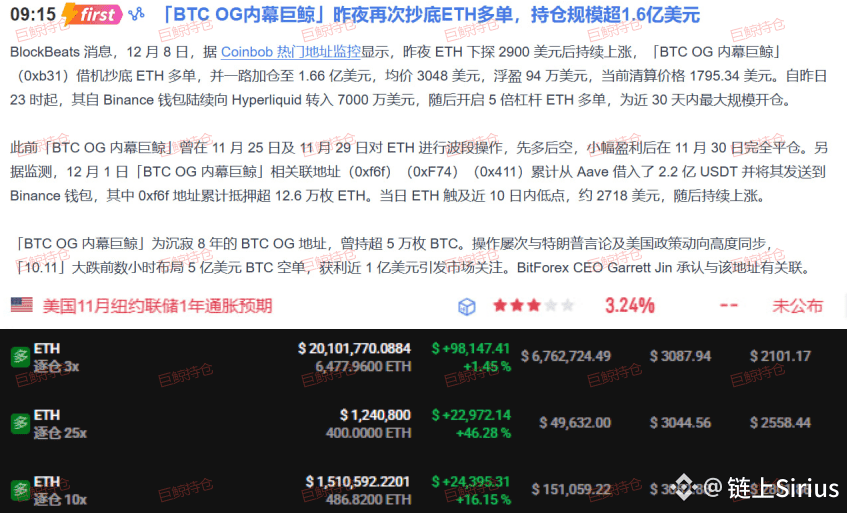 昨晚,一条沉睡八年的“比特币上古巨鲸”突然出手,豪掷 1.6亿美金,用5倍杠杆在 3048美元 附近狂开ETH多单!兄弟们,这不是小打小闹,这是真金白银的“明牌”看多。更巧的是,这条巨鲸的操作,多次与特朗普言论和美国政策神同步,上次精准做空爆赚1亿美金的事还历历在目。