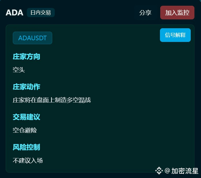 ADA近期筹码集中在大户,警惕突发主力减仓带来的放量下杀。