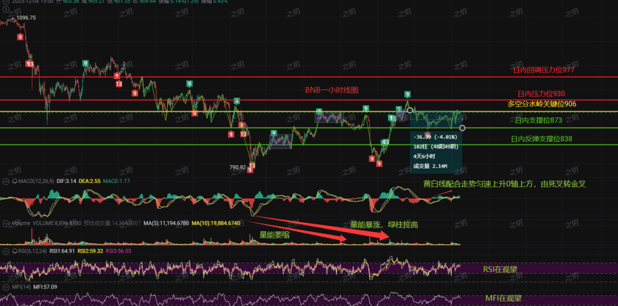 My view is: the market is unlikely to drop directly to 838. In the short term, it is more likely to oscillate repeatedly in the 906-930 range, washing out the weak hands. Here, short-term experts can try to catch a wave of rebound, but remember, it is just a rebound.