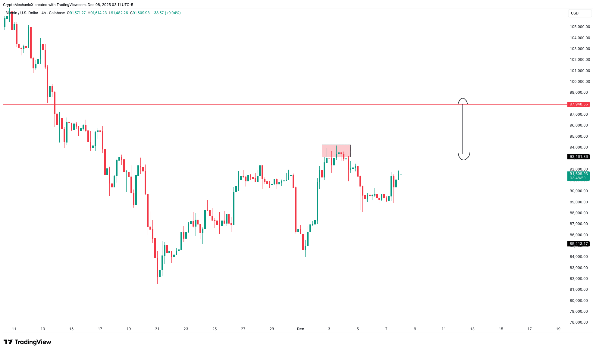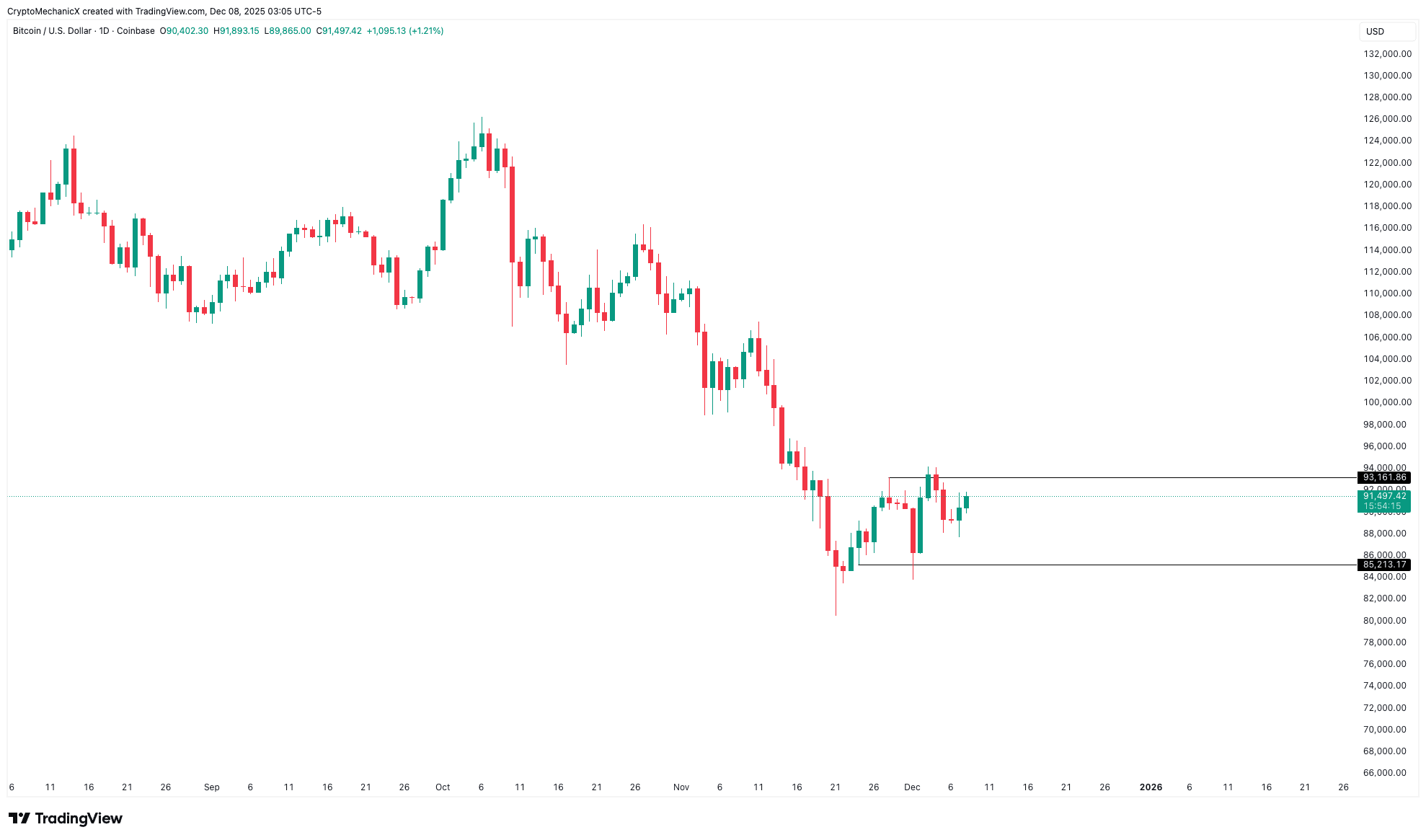 The daily chart is also range-bound and, overall, still in a bearish trend. However, we did have some chance to shift the internal structure. As I discussed last week, above 93k, the internal structure would shift, but the price did close above it but was quickly pushed back inside 93k. That means $93k remained a key zone to break.