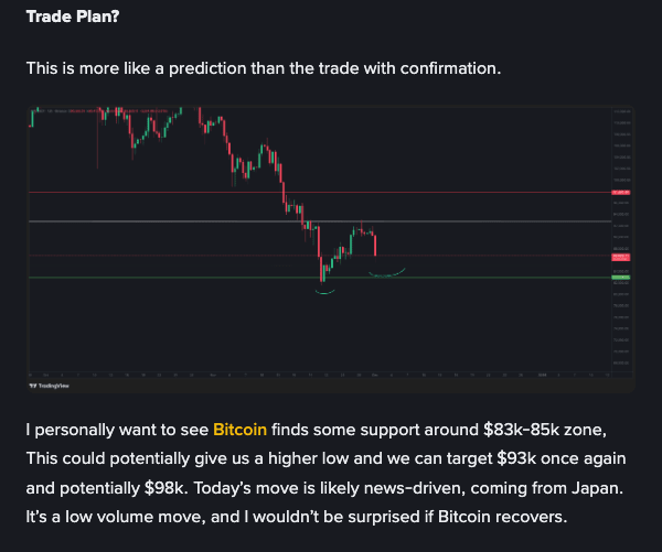 We talked about if Bitcoin holds at 83k to 85k, that could potentially give us a higher low. “Potentially” means there’s no confirmation, because a higher low is only confirmed when the market then prints a higher high. So, it was just a prediction, and we discussed that if the market holds at 83k to 85k, then we could potentially target 93k and even 98k. The market did hit 93k, and then we discussed on my profile that holding 93k is important. Since it didn’t hold, the market showed weakness and got rejected from there. Anyway, now let’s talk about what’s happening in the market now, i don't want to add every single update i shared on my profile in this update, i just hope you guys are following it. so let’s begin.