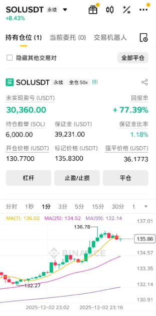 I am Anna. Today the SOL on the screen is like a stagnant pool, with an amplitude of less than 1% on the hourly chart, closing at 135.92. But this is not calm at all; it’s the long and short parties almost breaking their wrists before the key pass! I tell you, the flatter the candlestick moves, the fiercer the competition behind it, clearly a silence before the storm, with the main force pressing down on a dead calm.