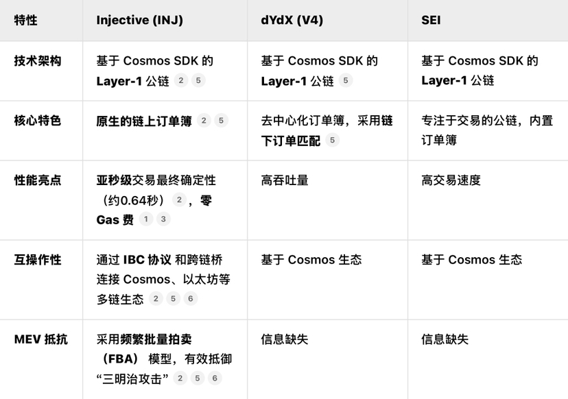To visually demonstrate its position in the market, the following table compares some key features of Injective with similar projects.