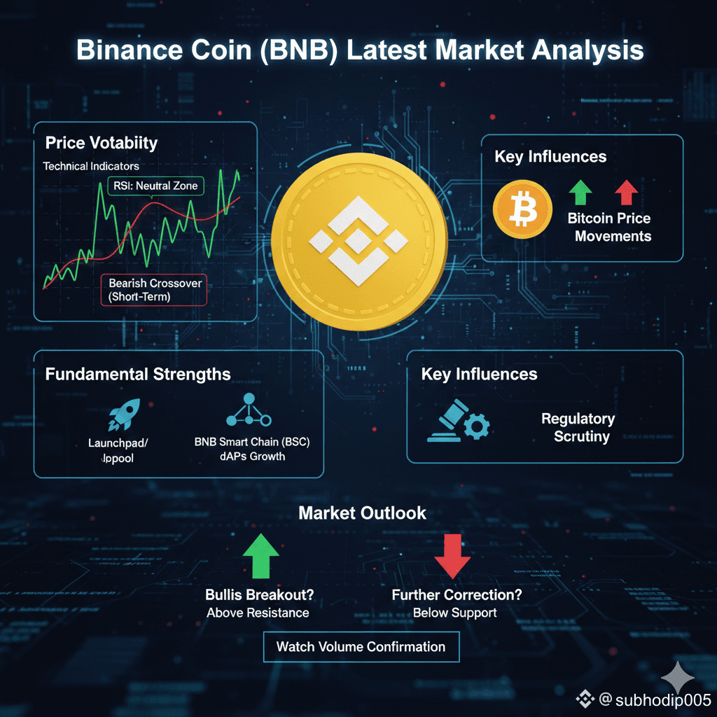 $BNB coin has been experiencing a notable period of volatility, reflecting broader trends in the cryptocurrency market. Recent analysis indicates that BNB is attempting to find stable support levels after a period of downward pressure, largely influenced by Bitcoin's price movements and regulatory news impacting exchanges.