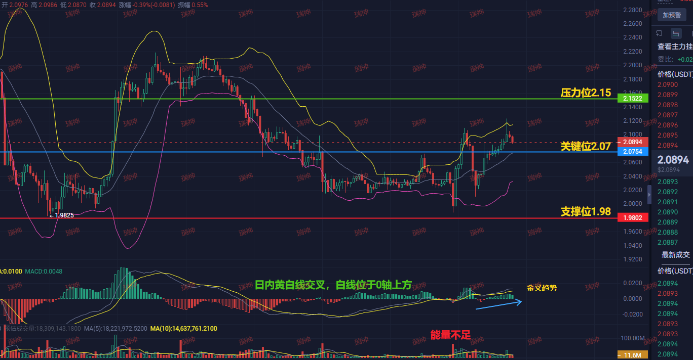 The current situation is: if it can stabilize at 2.07, there is a chance to attack 2.15; but if it breaks below 2.07, it may directly test the support at 1.98. Once this level is lost, panic selling will ensue.