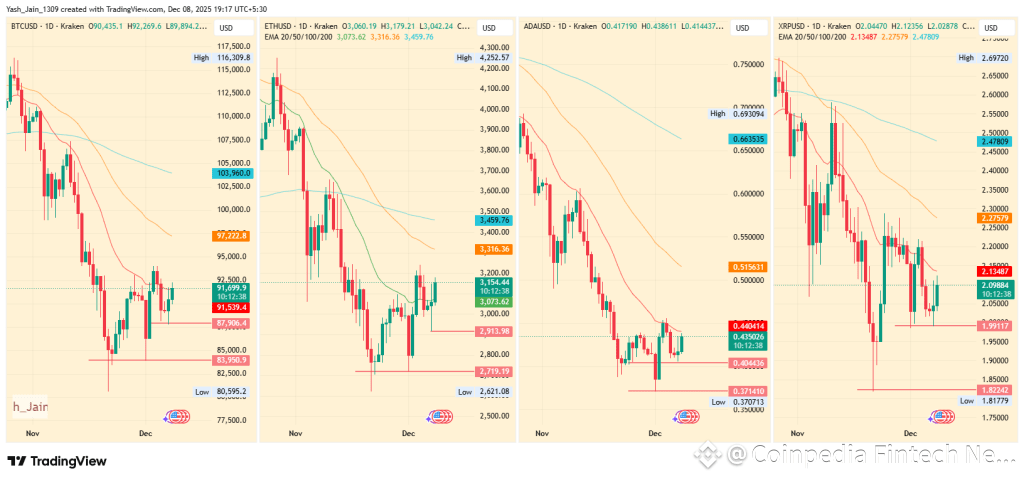 Furthermore, both Bitcoin and Ethereum have breached their 20-day EMA bands, while Cardano and XRP/USD are approaching theirs. This shift in structure reinforces the possibility that the market may already be preparing for a more defined rebound, which is, at this point, conditional on macroeconomic confirmation.