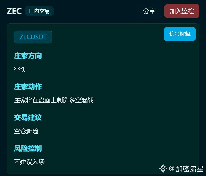 ZEC近期巨鲸大额入场,主力情绪容易反复,建议严格执行分批建仓、止损止盈。