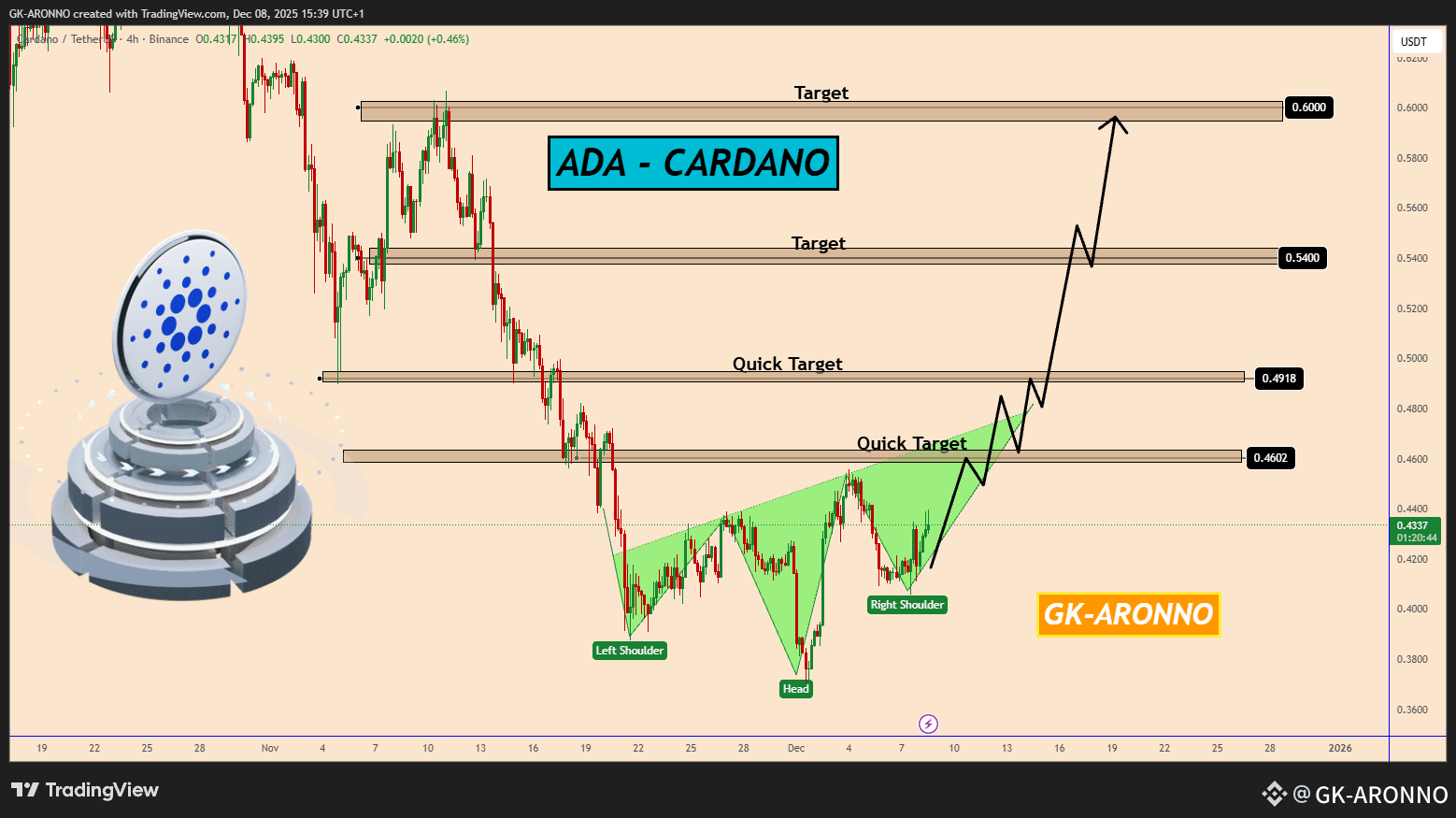 $ADA is about to complete and reverse the Head and Shoulders pattern. The price is currently rising to test the neckline of the pattern, which is also the strongest area for buyers.