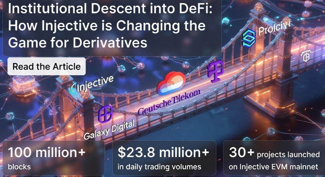 Imagine Injective as a diplomatic bridge that brings together major players from around the world to make financial instruments work seamlessly across borders, without clunky, outdated systems slowing things down. This is not just another blockchain platform. Injective attracts serious institutional power, building the backbone that finally brings on-chain derivatives to corporate quality. If you are a trader or developer in the Binance community, this is a big deal. The council, gathered at the end of November, unites validators and heavyweight partners: Google Cloud for reliable, scalable computing; Deutsche Telekom for telecommunications-class security; Galaxy Digital for deep institutional liquidity. The council oversees protocol upgrades and closely monitors to ensure that derivative markets can indeed withstand real-world stress. With over 100 million blocks processed and daily trading volumes of perpetual contracts around 23.8 million dollars, they are handling scalability right as the Injective EVM mainnet launches, with over 30 projects participating in the first week. It’s like having the best minds and resources united for one goal: to make DeFi better than traditional finance.