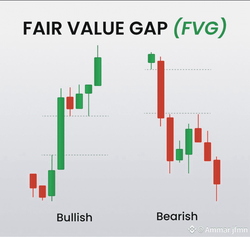 الـ FVG هو منطقة غير عادلة في السعر، تحدث عندما يتحرك السوق بسرعة كبيرة، بحيث تقفز الشموع بدون ما تلمس بعضها.هذه الفجوة تمثل عدم توازن (Imbalance) بين المشترين والبائعين.بمعنى آخر: