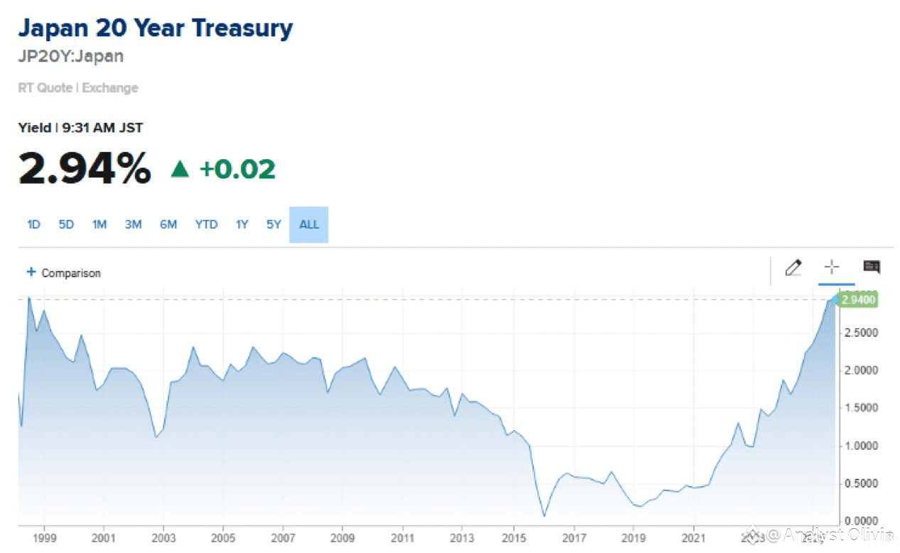 Today, Japan’s 20-year bond yield hit 2.94%, the highest level ever recorded.