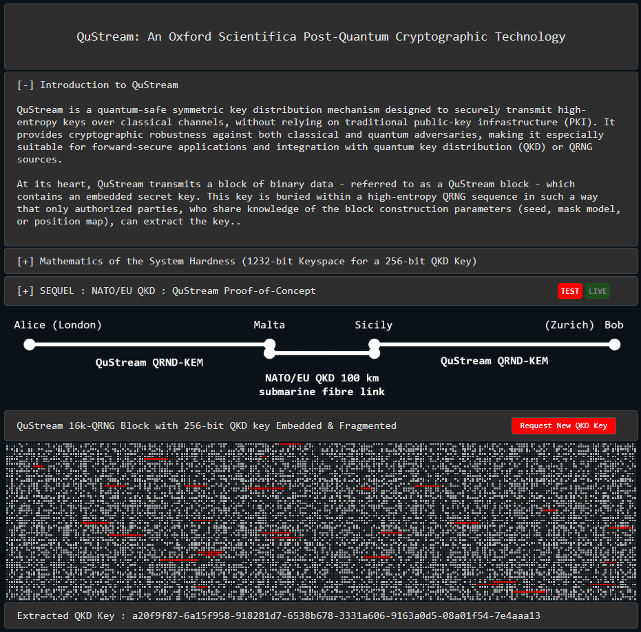 🤌Quantum-Safe Encryption: A patented encryption algorithm that uses physically generated random data (from quantum processes) to create dynamic and one-time-use keys (One-Time Pad), ensuring theoretically perfect security that cannot be broken by any computer, not even a quantum one.
