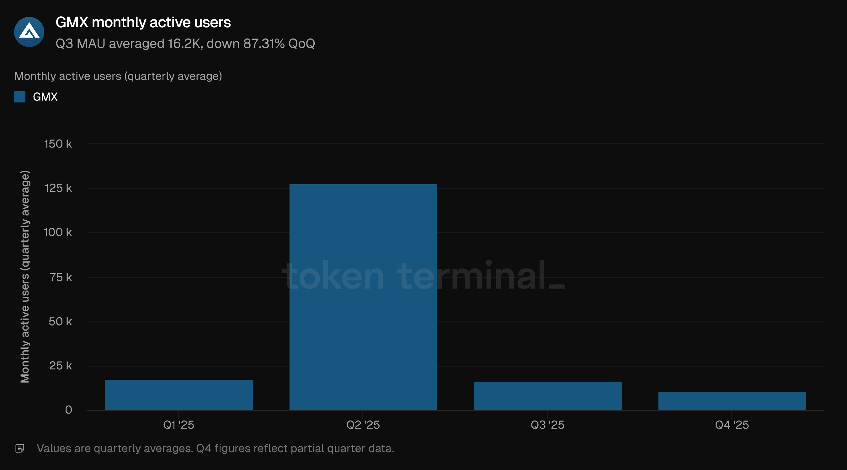 Monthly active users: 16.20K (-87.31% QoQ)