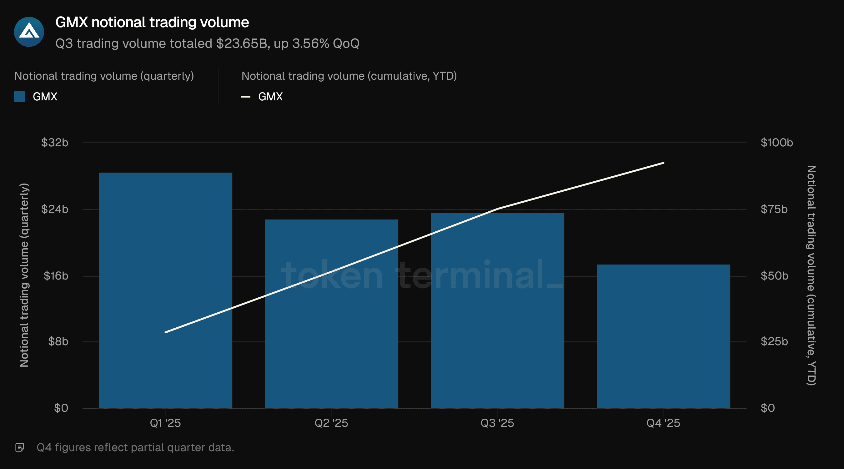This report is published quarterly and produced leveraging Token Terminal’s end-to-end onchain data infrastructure. All metrics are sourced directly from blockchain data. Charts and datasets referenced in this report can be viewed on the corresponding GMX Q3 2025 Report dashboard on Token Terminal.