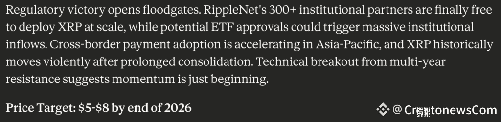 Claude has set a price target of 5 to 8 dollars for XRP by the end of 2026, which would mean more than a three times rally. Such a reversal would contrast sharply with XRP’s strong run earlier this year, when it climbed to a seven-year peak of 3.65 dollars in July after Ripple secured a major legal win against the United States Securities and Exchange Commission.