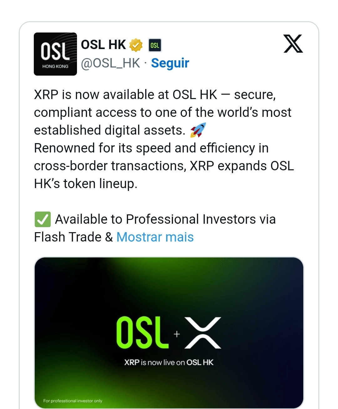 Professional investors in Hong Kong now have direct access to XRP trading using the Hong Kong dollar (HKD), following its inclusion in the list of available assets on OSL, one of the region's licensed digital asset exchanges.
