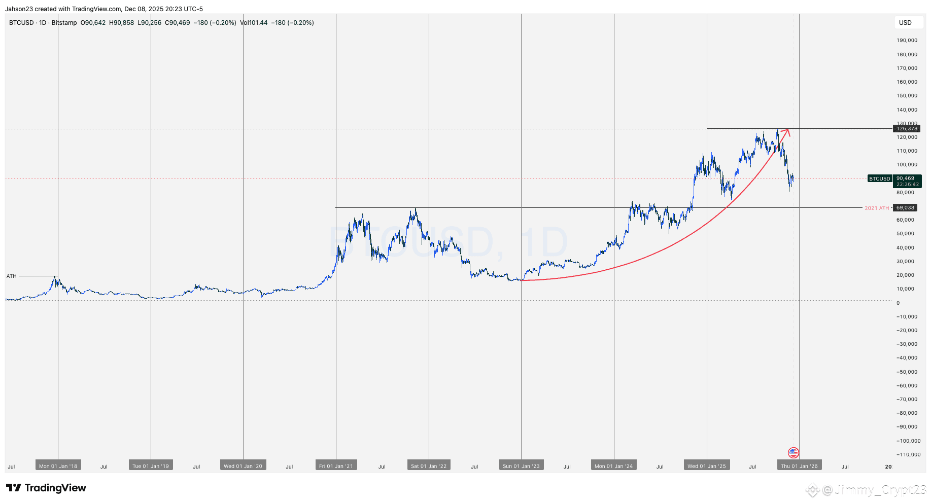 📝 From January 1 2023 to October 8 2025 when Bitcoin reached a high of $126k, Bitcoin has made over +675% gain and that is very huge gain.