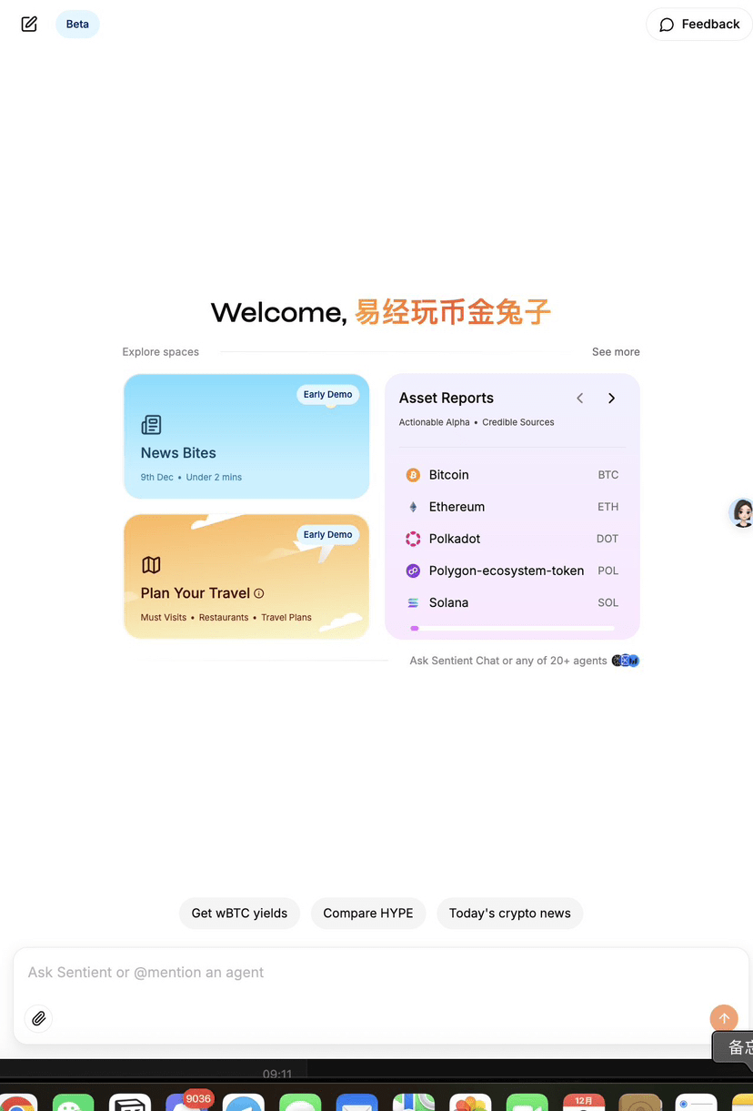 I opened Sentient's chat grid. As shown in the image below, half of the homepage is dedicated to predicting the cryptocurrency market.