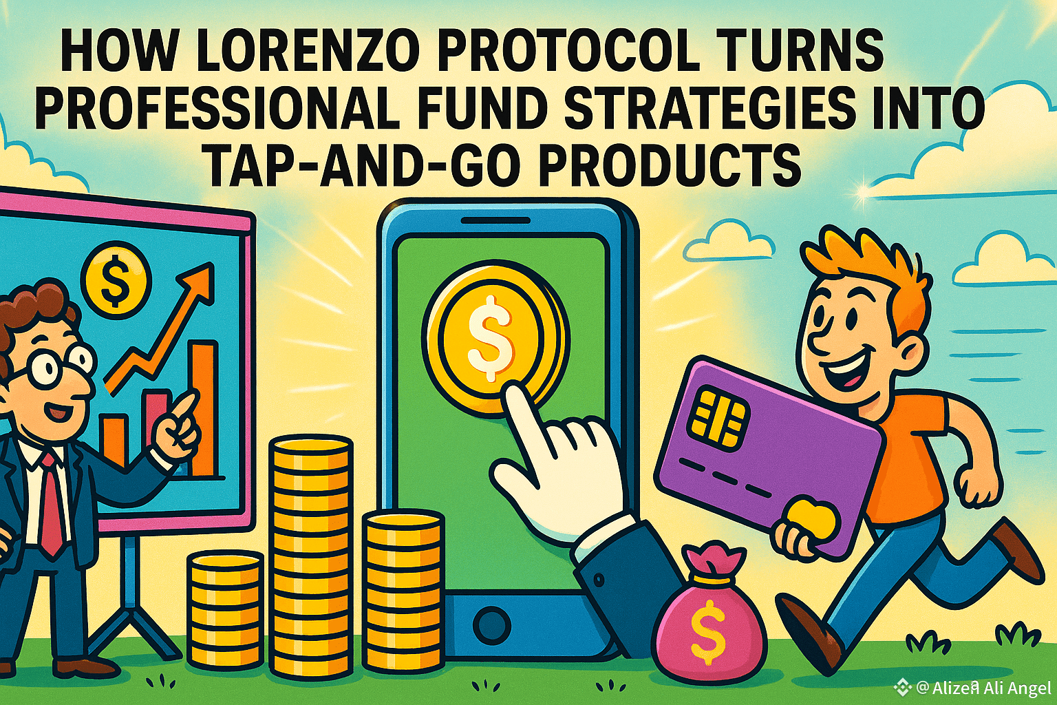 @Lorenzo Protocol For most people, “professional fund strategy” still sounds like something that belongs in a pitch meeting at a big asset manager, not inside the same wallet that holds a few hundred dollars of stablecoins. That gap between institutional finance and everyday users is where Lorenzo Protocol is trying to live: take complex strategies and package them into products you can access with a single on-chain tap instead of a long onboarding process.