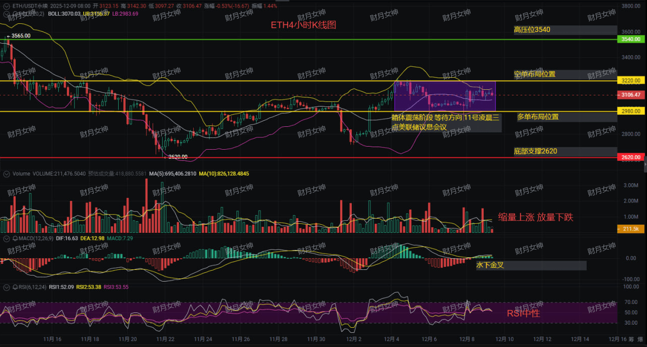 In simple terms: the technical aspect looks bullish but lacks strength; the 3220 pressure level is the ghost gate. If it breaks through, we need to see what the Fed meeting 'blows in the wind'! Is the golden cross under water a real rebound or a false signal? Can the shrinking volume increase hold up to 3540?