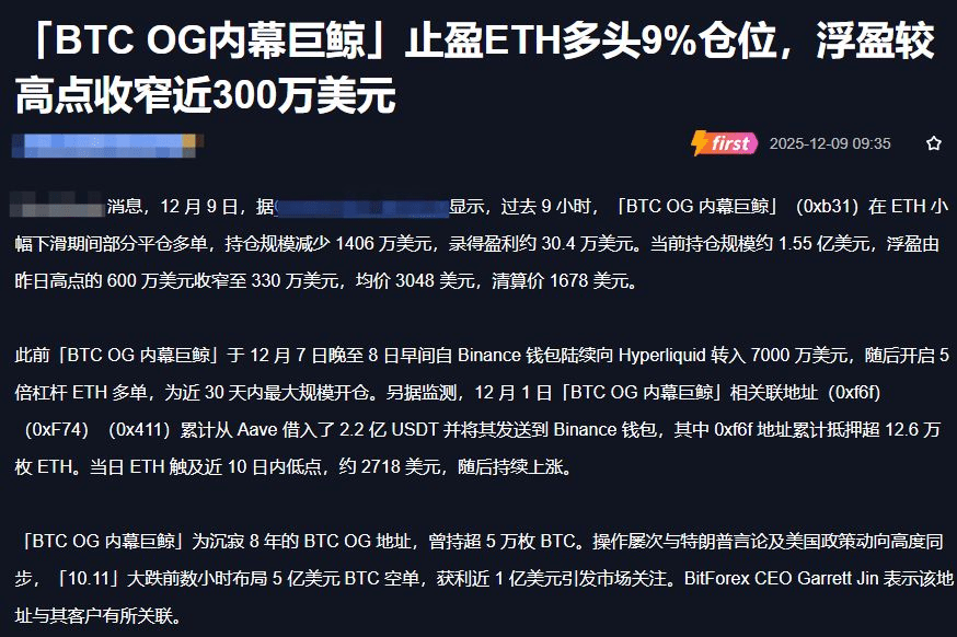 First, let's look at the news: Did the whale take profit and run away? A floating profit decrease of 3 million, is it a warning or a smokescreen?
