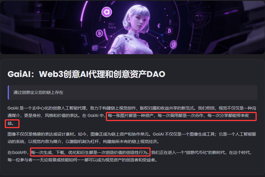 Previously, AI-generated images were like selfies stored on a phone; GaiAI turns your photos into digital collectibles, stored in a global transparent 'art bank,' with any subsequent use bringing you revenue.