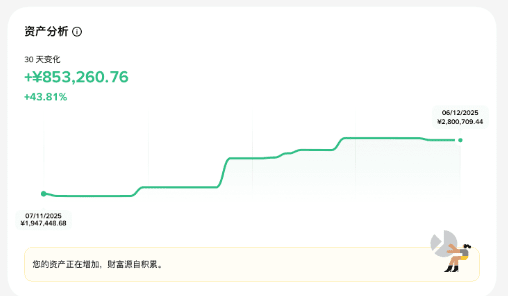 Let me share my performance with everyone. Looking back at this month, I made about 1 million through low-leverage trading, plus October, that's a total of 2 million. If I had added one or two times leverage, this number could have soared to 5 million or even higher. But I'm not in a hurry; in a bear market, not losing money has already put me ahead of 90% of retail investors. So I use leverage and position very conservatively, waiting for the bull market to start, then I'll consider going all in.