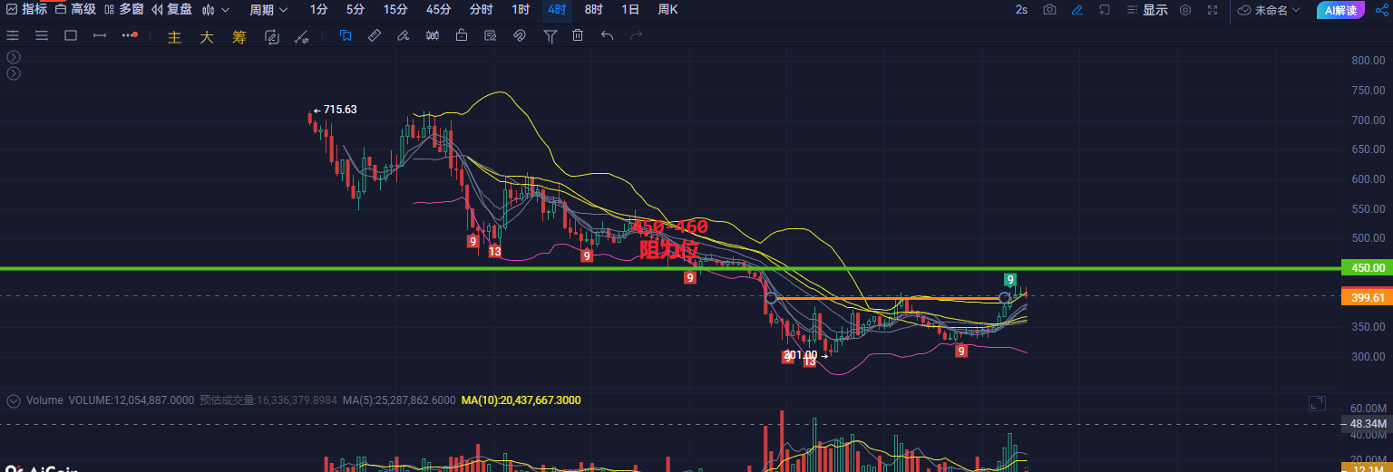 First, let's take a look at the historical situation. Last time I told everyone to short when it was close to 420, and then ZEC slid down like a slide, plummeting to 320. This time, I'm eyeing the 450 - 470 resistance zone, which feels particularly strong. I think we can try shorting here; if done well, the profit potential is quite considerable. As usual, a 1x long-term operation, don't be greedy with leverage, this way we basically won't get liquidated. Even if we accidentally get stuck, don't panic, just hold on and don't move it.