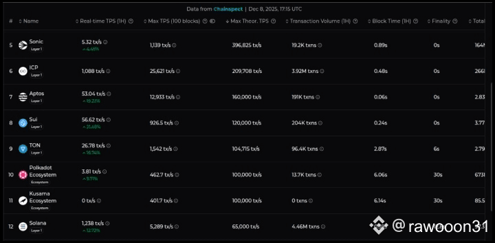 Sui SUI $1.62 24-hour volatility: 0.9% Market capitalization: $6.06 billion 24-hour volume: $956.50 million , TON TON $1.64 24-hour volatility: 1.3% Market capitalization: $4.01 billion 24-hour volume: $126.20 million , Polkadot DOT $2.14 24-hour volatility: 0.1% Market cap: $3.52 B 24-hour volume: $205.85 M , and Solana SOL $133.9 24-hour volatility: 1.2% Market cap: $75.17 B 24-hour volume: $5.51 B follow, with approximately 120,000, 105,000, 100,000, and 65,000 TPS, respectively. However, SOL has the highest "Real-Time TPS" among all blockchains on Chainspect—at 1,238 transactions per second at the time of writing.