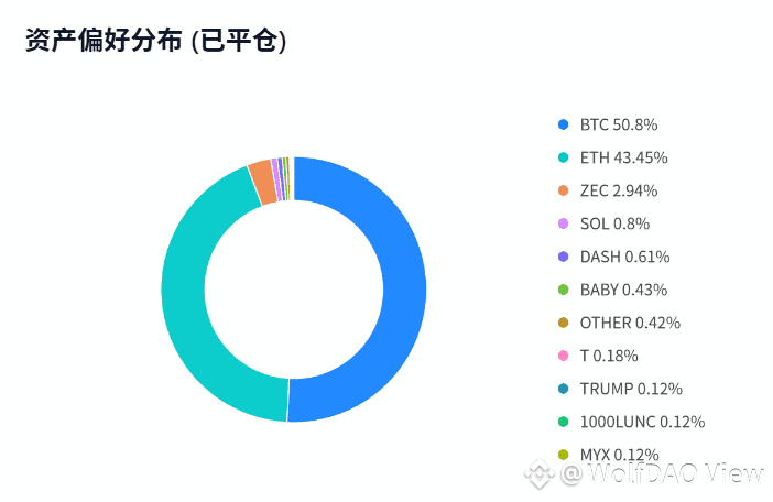 资产高度集中:94% 仓位分布在 BTC(51%)和 ETH(43%),高流动性币种适配高频交易,降低成交滑点风险;