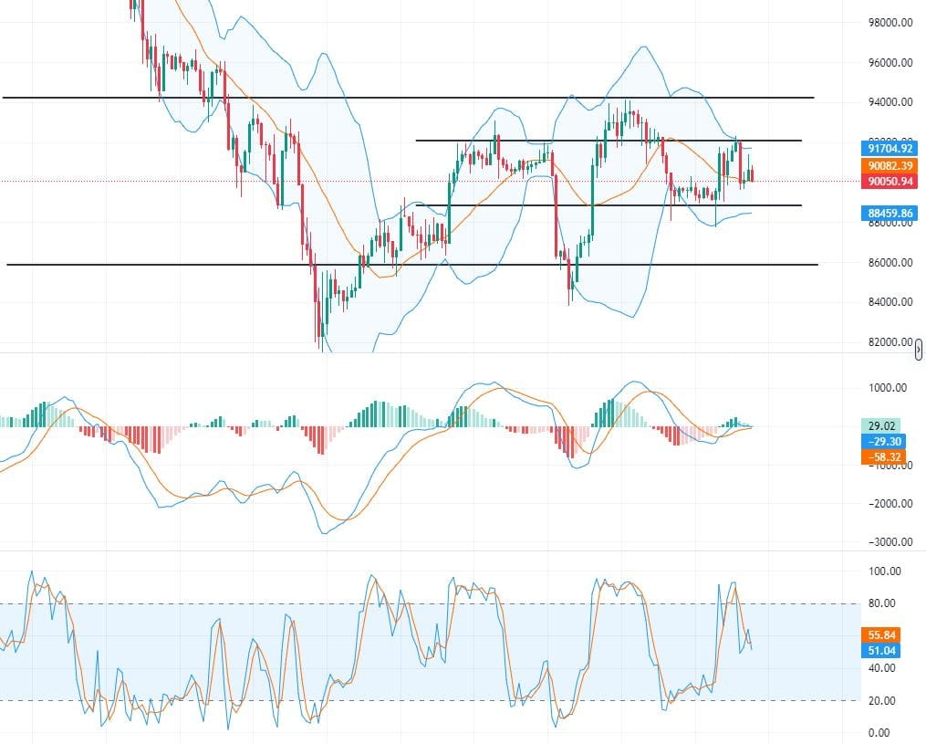 1. Buy near the 89000-88000 area on a pullback, target 90000-90500