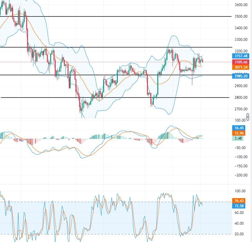 1. Buy near the 2950-2900 area on a pullback, target 3000-3030