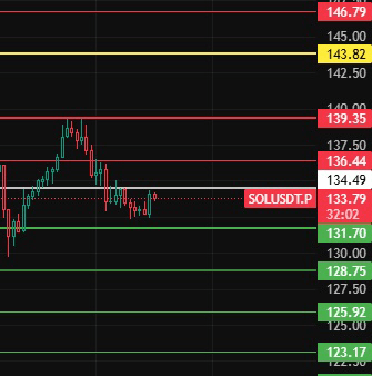 Pay attention to the position of 134 for SOL today. Only if it stands firmly above this position for 1-2 hours can the rebound begin, and pay attention to the resistance levels near 136 (small resistance), 139-143-146!