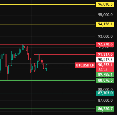 Pay attention to the position of 90520 for Bitcoin today. Only if it stands firmly above this position for 1-2 hours can the rebound begin, and pay attention to the resistance levels near 91310 (small resistance), 92280-94150-96000!
