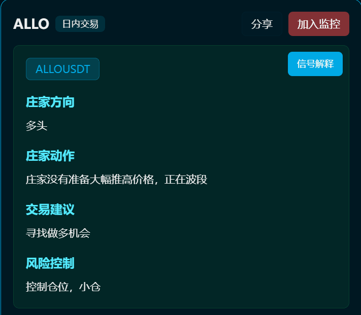 ALLO is a type of new coin + clear signs of main force control, making it easy to be 'spiked' and stop loss, it is essential to strictly build positions in batches + resolutely execute stop losses.