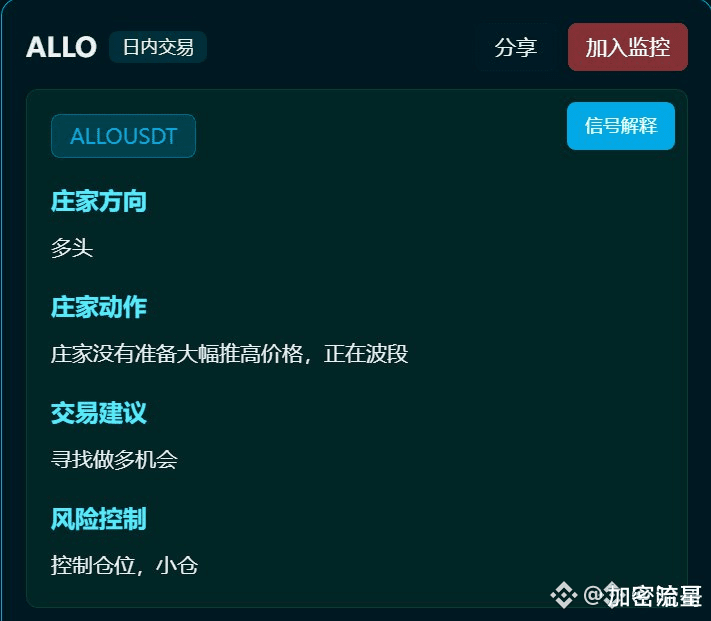 ALLO 属于新币+主力控盘痕迹明显的类型,点位容易被“插针”扫损,务必严格分批建仓+坚决执行止损。