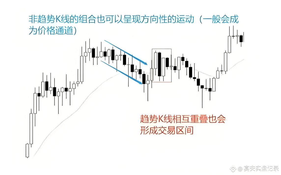 趋势 K 线可能构成非趋势的交易区间,非趋势 K 线也可以呈现趋势运动。