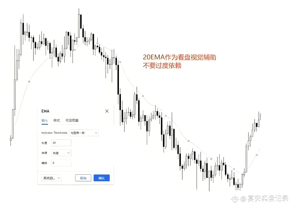 将 20EMA 作为视觉辅助工具,而不是唯一依据。例如,当价格接近 20EMA 时,应结合具体的 k 线形态来决定是否入场。