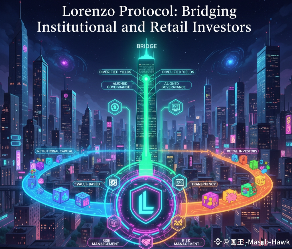 Institutional investors have never been handicapped: automatic systems, well-established policies, great guardrails that prevent the emotional aspect of decision-making. The retail users, in their turn, introduce vitality, discovery and actual community throb. Lorenzo does not attempt to substitute either of the sides,but rather it mixes them up.Lorenzo democratizes advanced investment behavior by packing investment strategies into On-Chain Traded Funds and automated vaults, which are typically the preserve of professionals. Rather than attempting to figure out how to do it all, yield cycles, risk thresholds, rebalancing, asset correlations, users can simply get into a strategy constructed with institutional discipline.