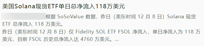 The U.S. Solana spot ETF saw a net inflow of $1.18 million yesterday, with one firm buying $1.18 million. Don't underestimate it; the total historical inflow has already reached $47.6 million! What does this indicate? Traditional large funds are continuously and gradually laying out their positions in SOL; they are looking at the long term, not just tomorrow's ups and downs. This is a solid long-term confidence support for SOL.