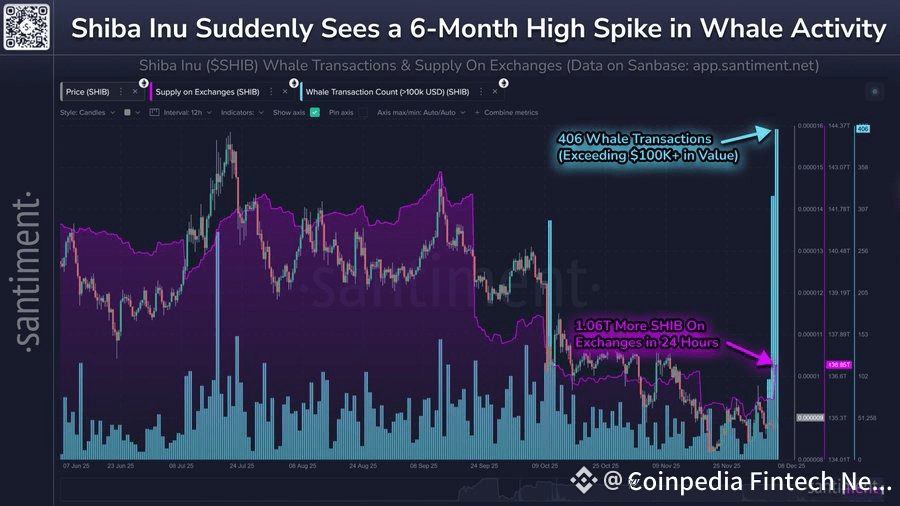 Shiba Inu (SHIB), often called the “Dogecoin Killer,” saw one of its biggest whale activities in months today. In just 24 hours, whales made 406 large transactions, over 1.06 trillion SHIB moved onto exchanges, and the burn rate jumped sharply.