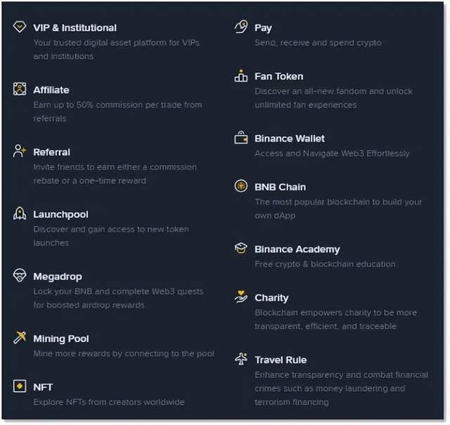 Looking at the Binance ecosystem, it encompasses not only spot and derivatives trading but also C2C entries for multiple fiat currencies, lending, wealth management, Binance Pay, BNB Chain, Web3 wallets, crypto academies, LaunchPool, and more. These product lines form a complete suite of services surrounding crypto assets.