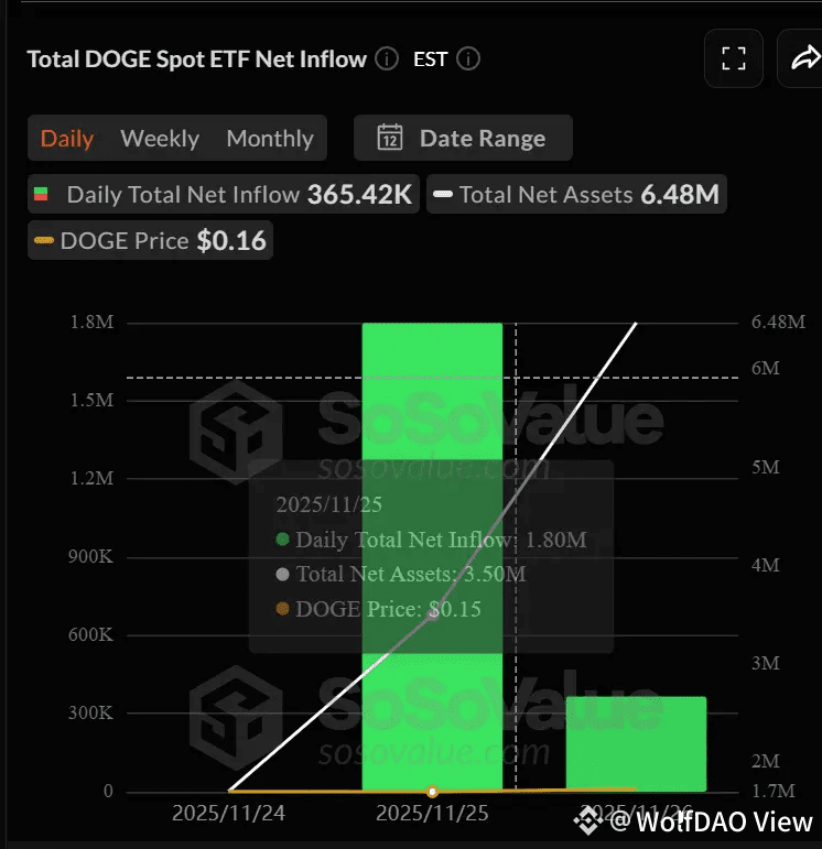 Dogecoin更惨。三只ETF总资产648万,净流入220万。Grayscale的GDOG首日交易量仅140万。meme币与机构需求根本冲突:年通胀3.3%永久稀释、无供应上限/智能合约/DeFi、机构无法单纯因为"因为Elon喜欢"便去买入、加之鲸鱼9-11月的抛售进一步加剧了市场的悲观。