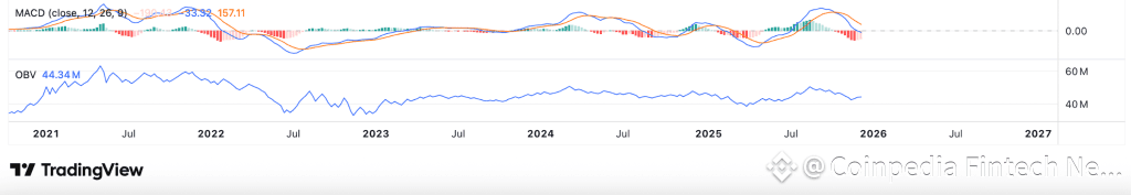 Ethereum’s weekly structure remains constructive as price coils within an ascending triangle, supported by higher lows. ETH is currently trapped between the 50-day MA near $3,300 acting as resistance and the 200-day MA around $2,600 serving as strong support, keeping volatility compressed. The Ichimoku Cloud is beginning to flatten and thin, a setup that often precedes directional expansion. Notably, OBV has printed a bullish divergence, signalling steady accumulation, while the MACD histogram shows a clear reduction in selling pressure. A confirmed break above $3,300 could open the path toward $3,500 and $4,100, while a loss of $2,600 risks a pullback toward $2,300–$2,400.