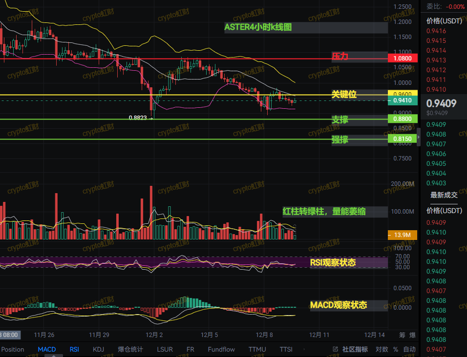Brothers, Rainbow Finance is here! ASTER has launched a perpetual contract, and it is said that even overseas influencers are paying attention. But on the chart, it is stuck at the critical line of 0.96; is it gearing up for takeoff or starting to fall? We must discuss this thoroughly today!